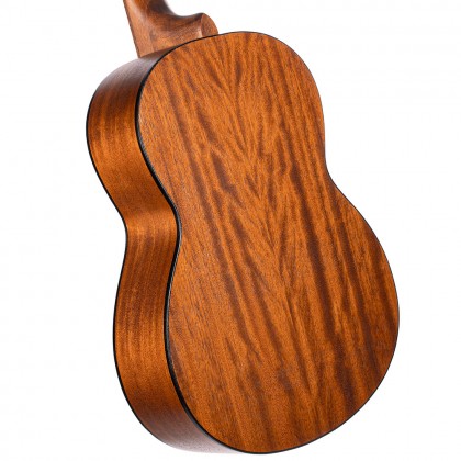 Покращена віялоподібна система зв’язок верхньої деки дозволяє помітно посилити резонанс вібрації нейлонових струн та отримати більш об’ємне та насичене звучання.
