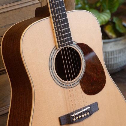 Резонаторний отвір, декорований абалоном і ABS пластиком, підкреслює природну красу і вишуканість інструменту. Крім того, гриф і задня дека також мають окантування, що захищає гітару від пошкоджень.