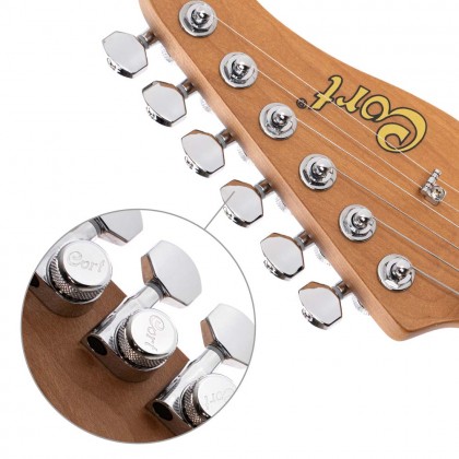 Замкові кілки Cort забезпечують чудову стабільність строю, усуваючи прослизання струн і сприяючи їх швидкій заміни в разі потреби.