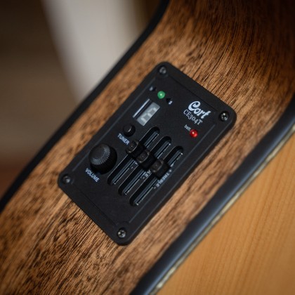Дизайн гітари Зменшений корпус типу SFX з вирізом Верхня дека Ялина (Spruce) Нижня дека Червоне дерево (Mahogany) Обичайка Червоне дерево (Mahogany) Глибина корпусу 83 мм Гриф Червоне дерево (Mahogany) Накладка грифа Мербау (Merbau) Бридж Мербау (Merbau) Верхній поріжок 43 мм (пластик) Нижній поріжок Пластик Розетка Чорно-білий декор з акриловою вставкою Інкрустація Крапки - маркери ладів Механіка Нікельована Мензура 25,5" (648 мм) Лади 20 Струни JUMBO 6ST: (012, 016, 024, 038, 041, 052) Система зв'язок деки Advanced X-Bracing Звукознімачі Cort CE304T (з тюнером) Управління Гучність, 3-смуговий еквалайзер, тюнер Кілки Закритого типу Окантовка Біла пластикова по корпусу Колір Натуральний відкритий - OpenPore (OP) Виробництво Індонезія Гарантія 12 місяців (на електронні та механічні компоненти) Комплектація Гітара, анкерний ключ