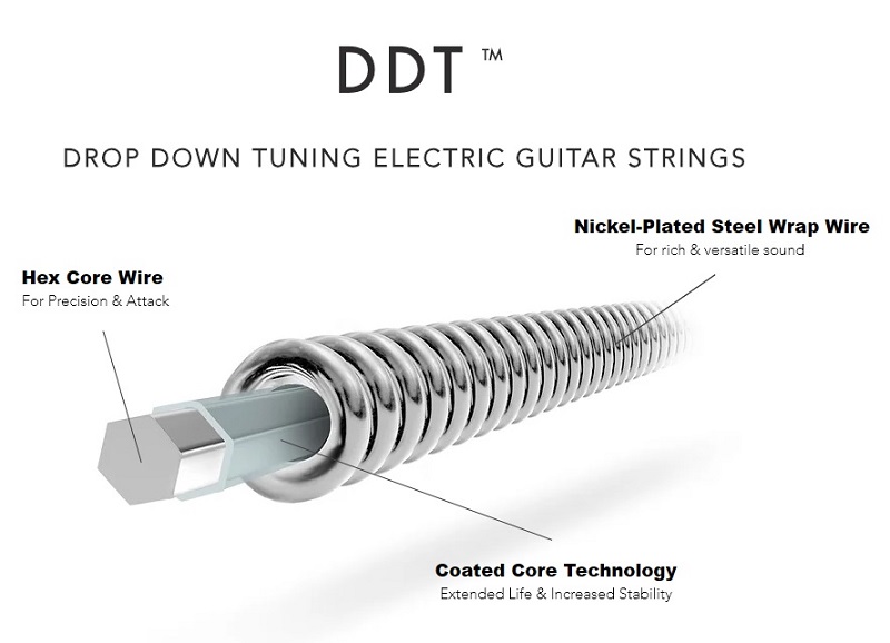 Струни для електрогітари DDT™ зберігають свою інтонацію навіть при найнижчих строях