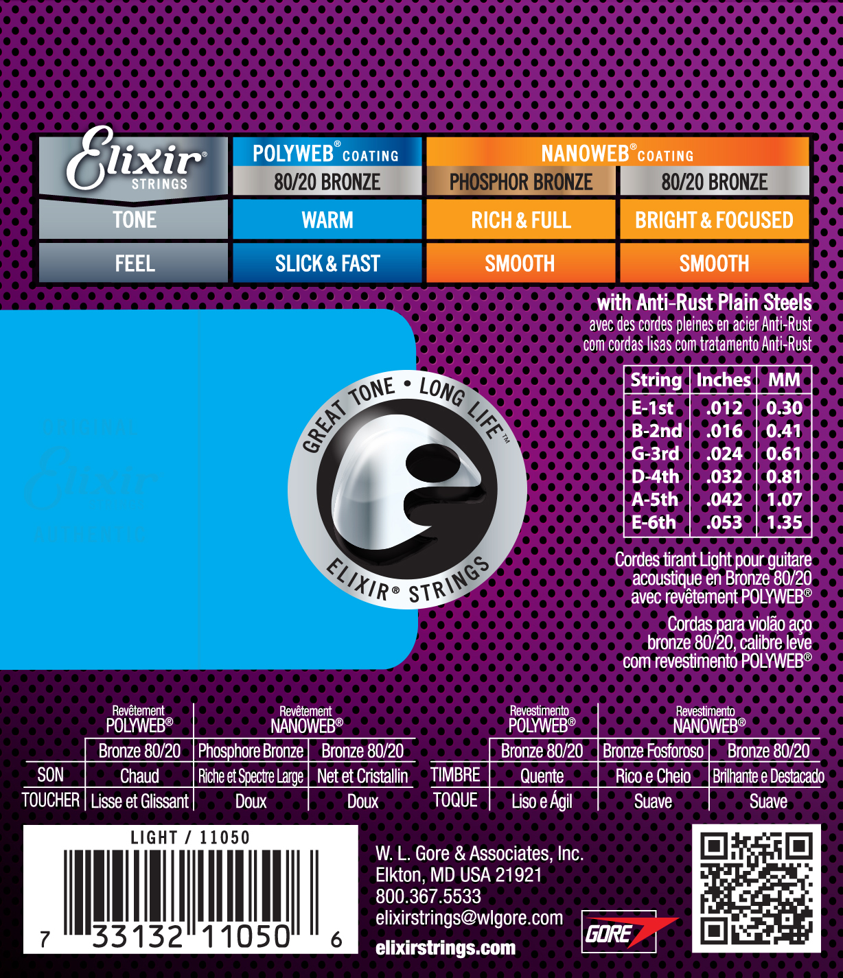 Струни для акустичних гітар ELIXIR AC PW з покриттям POLYWEB® забезпечують теплий, «розіграний» звук разом зі збільшеним терміном служби, який музиканти звикли очікувати від струн цієї компанії.