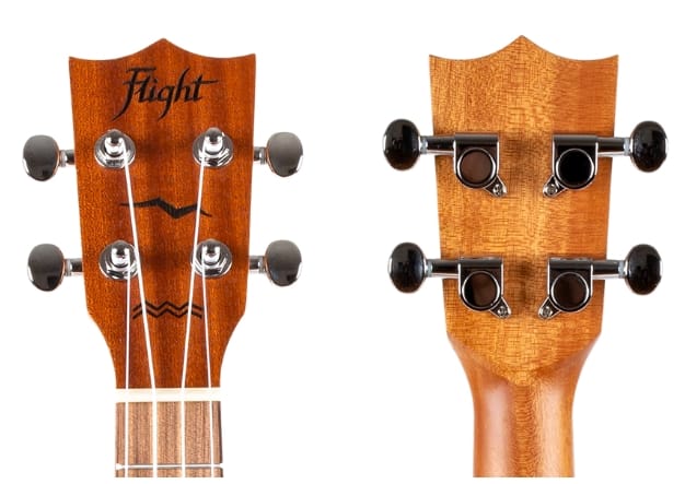 Дизайн головки грифа – неотъемлемый элемент укулеле Flight. Тщательно продуманная головка грифа на всех наших укулеле оснащена колками открытого типа, которые прекрасно держат строй.