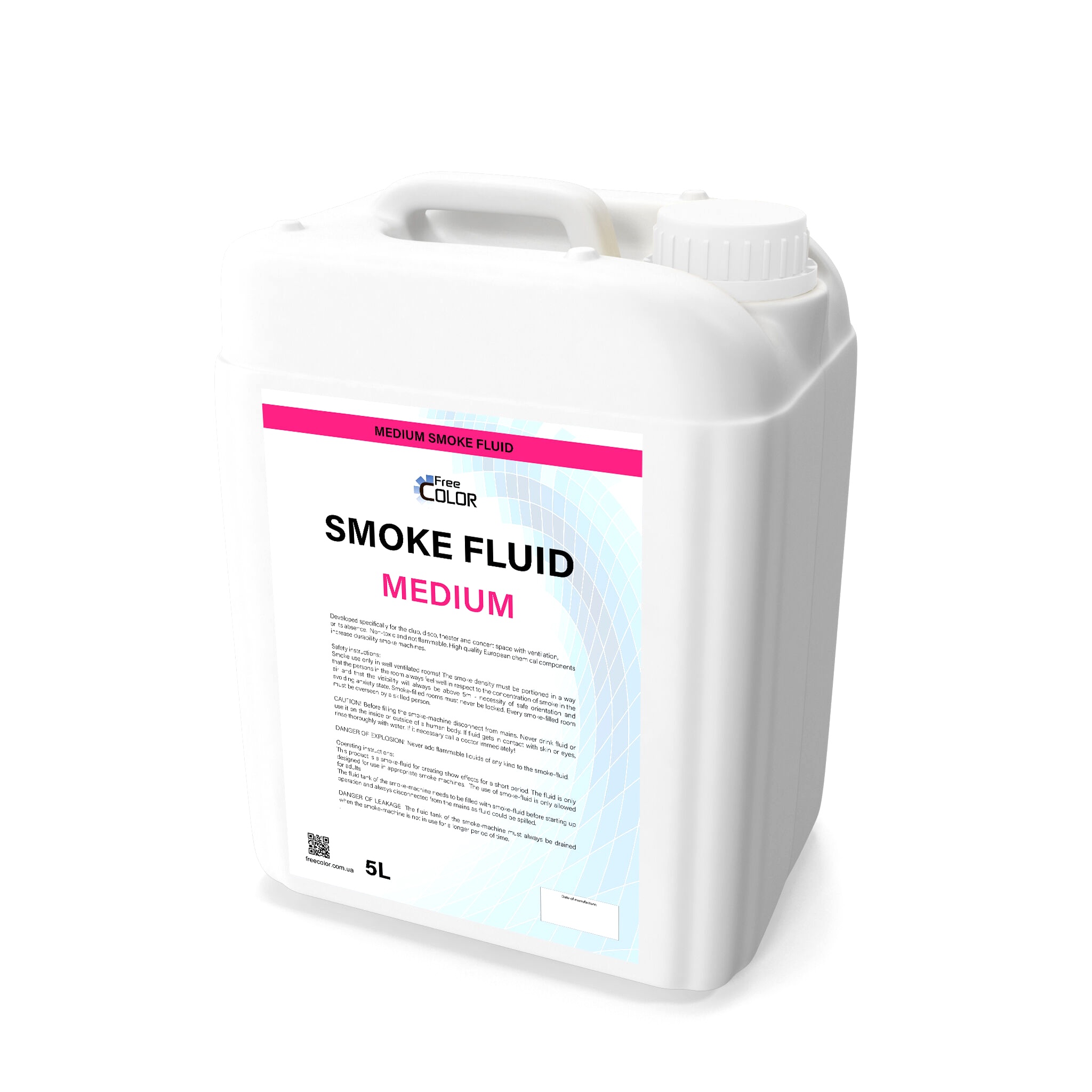 FREE COLOR SMOKE FLUID MEDIUM 5L — професійна рідина для генераторів диму із середньою щільністю туману, розрахована на стабільну роботу в прокаті, інсталяціях та івент-сценаріях. Склад формує рівномірний димовий потік без різких перепадів густини, завдяки чому світлові промені, заливки й ефекти читаються чисто та передбачувано впродовж усієї програми.