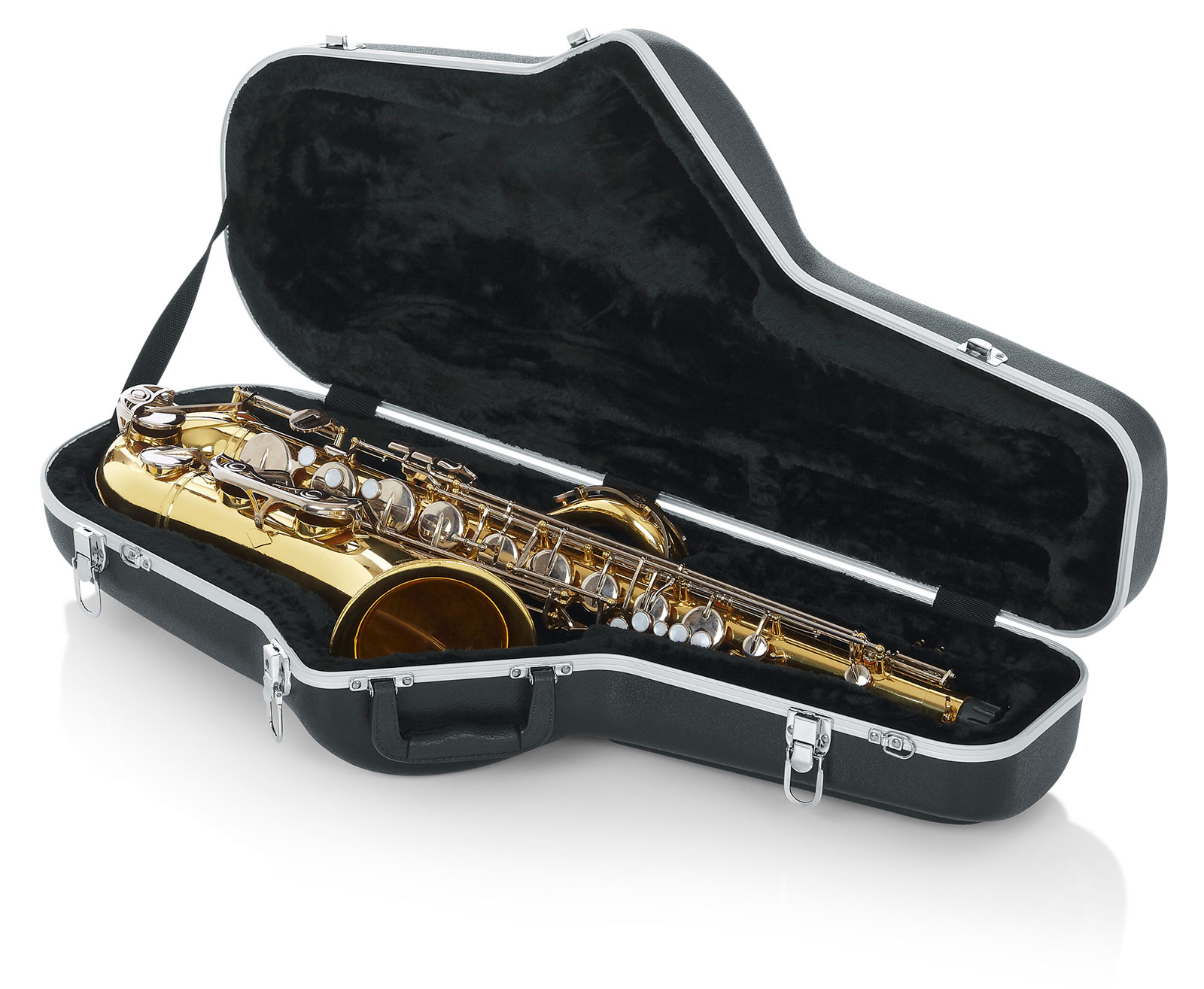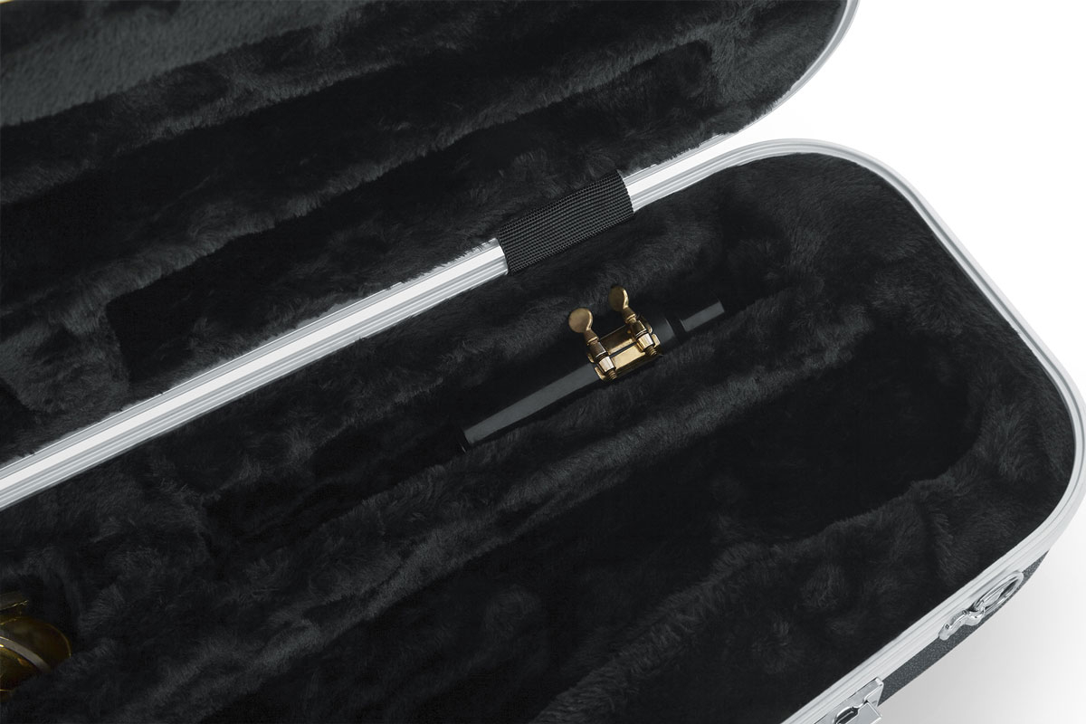 GC-TENOR SAX — посилений ABS-кейс із алюмінієвим каркасом, розроблений для гастролей. Формований EPS з плюшем щільно тримає тенор, не допускаючи зміщень. Посилена ручка, хромовані замки й кріплення для ременя додають надійності. При зовнішніх 880×435×203 мм вага лише 2,95 кг — оптимум для поїздок та авіаперельотів.