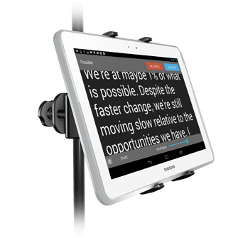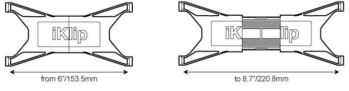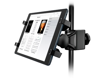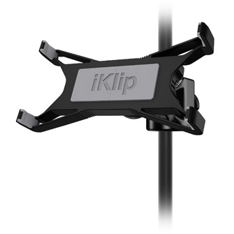 Завдяки новому тримачеві iKlip Xpand ви можете уникнути подібної ситуації. iKlip Xpand – це регульований тримач, сумісний з більшістю планшетів. Чотири упори, що налаштовуються, і затискач для стійки, виготовлені із застосуванням технології “Gorilla Grip”, надійно утримують ваш ґаджет на мікрофонній стійці, а спеціальний шарнір дозволяє точно налаштувати його положення.