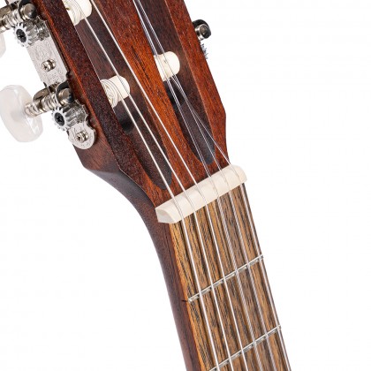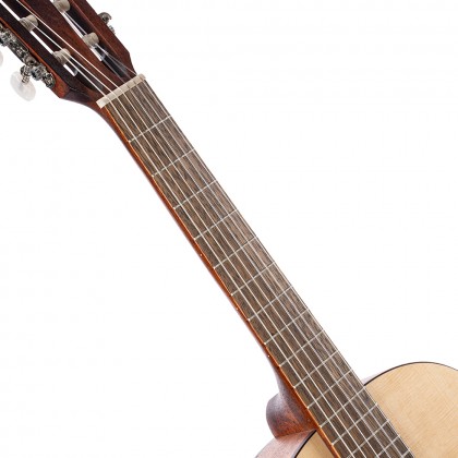 З довжиною мензури 3/4, ця гітара ідеально підходить в якості першого інструменту для юних учнів. Також цю компактну класичну гітару зручно брати з собою в подорожі.