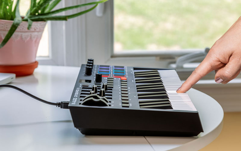 | Контролери | (8) призначуваних чутливих до швидкості натискання педів RGB з підсвічуванням і функцією Note Repeat для створення бітів, запуску кліпів тощо. (4) регуляторів і кнопок для управління віртуальними інструментами, плагінами ефектів, елементами управління DAW і т. Д. (4) призначуваних фейдерів для управління віртуальними інструментами, плагінами ефектів, фейдерами DAW тощо. Кнопки Preset і DAW для автоматичного меппінга елементів управління DAW і параметрів плагінів |