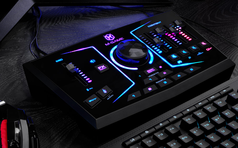 M-GAME RGB DUAL – це потоковий USB інтерфейс/мікшер для двох комп’ютерів зі світлодіодним RGB-підсвічуванням, що настроюється, семплером, звуковими ефектами та засобами формування голосу в поєднанні з професійним аудіоінтерфейсом і фізичною панеллю управління мікшуванням.