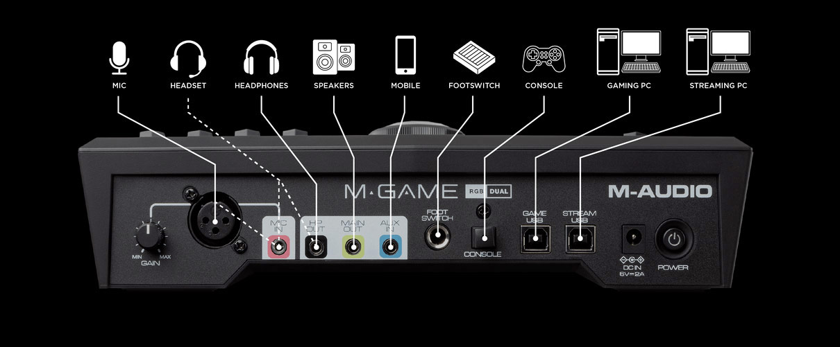 Розроблений ігровими гуру M-Game спільно з командою інженерів-аудіодизайнерів M-Audio, M-Game RGB Dual поєднує потужний ігровий аудіоінтерфейс і стримінговий мікшер. Ласкаво просимо до нового рівня потокового мовлення!