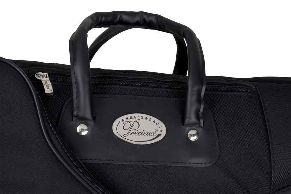 Преміальний Précieux: Rock Tex® з водовідштовхувальним просоченням, 25 мм захисний шар, чорний вельвет усередині та посилений захист розтруба. 10‑мм блискавка, шкіряні ручки на заклепках, два наплічні ремені — готовність до сцени й подорожей.