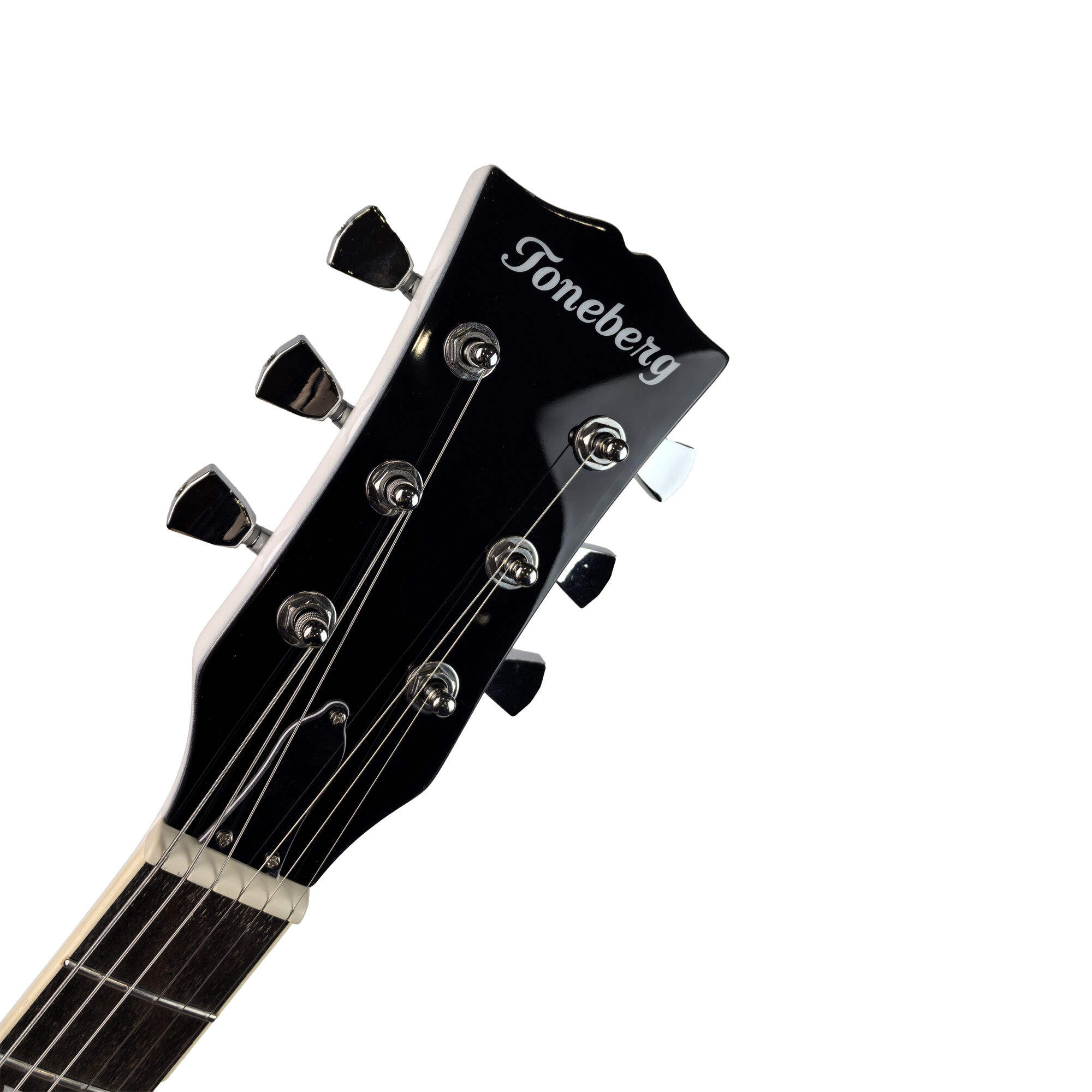 Toneberg TESG 400 WH — електрогітара у стилі SG, що поєднує класичну рокову геометрію, збалансований відгук і зручність щоденної гри. Корпус із червоного дерева формує теплий, щільний середній діапазон із виразною атакою, а гриф із махагоні та накладка з палісандра забезпечують комфортний контакт і стабільний тон по всій мензурі. Схема звукознімачів H-H орієнтована на універсальність: від чистих партій до насиченого драйву з хорошою читабельністю акордів.