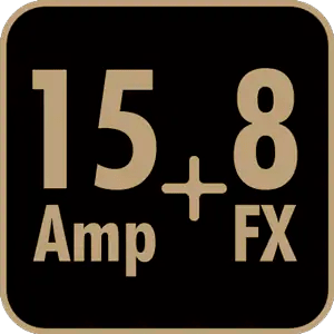 | Ефекти | 5 Guitar Amp Models (+10 в додатку), 1 Acoustic Model (+2 в додатку), 1 Bass Model (+2 в додатку), 1 Flat Voicing (+2 в додатку), CHORUS, FLANGER, PHASER, TREMOLO, ECHO , ECHO/REV, SPRING REVERB, HALL REVERB, * COMPRESSOR, * NOISE GATE (* доступні тільки в додатку) |