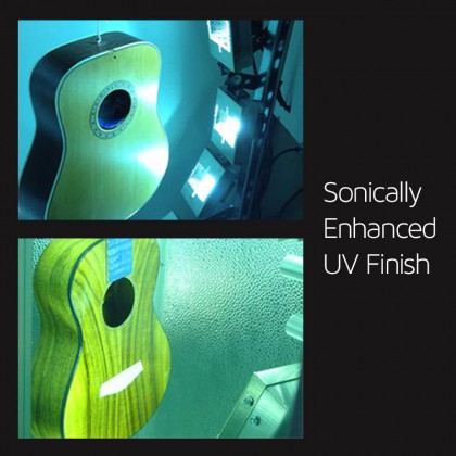 Для того, чтобы раскрыть весь потенциал цельной древесины мы используем особое ультратонкое покрытие. Специальная обработка ультрафиолетом не только значительно улучшает резонанс корпуса, но также делает это покрытие более устойчивым к царапинам.
