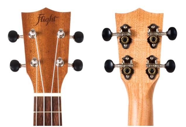 Дизайн головки грифа – неотъемлемый элемент укулеле Flight. Тщательно продуманная головка грифа на всех наших укулеле оснащена колками открытого типа, которые прекрасно держат строй.