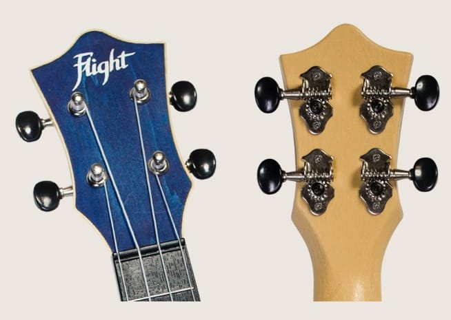 Дизайн головки грифа – неотъемлемый элемент укулеле Flight. Головка грифа TUS35 сделана из липы и декорирована древесной накладкой в цвет верхней деки. Все укулеле Flight имеют тщательно продуманную головку грифа с колками открытого типа, которые отлично держат строй.