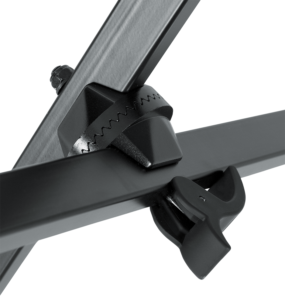 Конструкция с двойной распоркой уравновешивает вес вашего инструмента, одновременно поддерживая общую прочность, создавая надежную и прочную стойку даже для самого активного музыканта.
