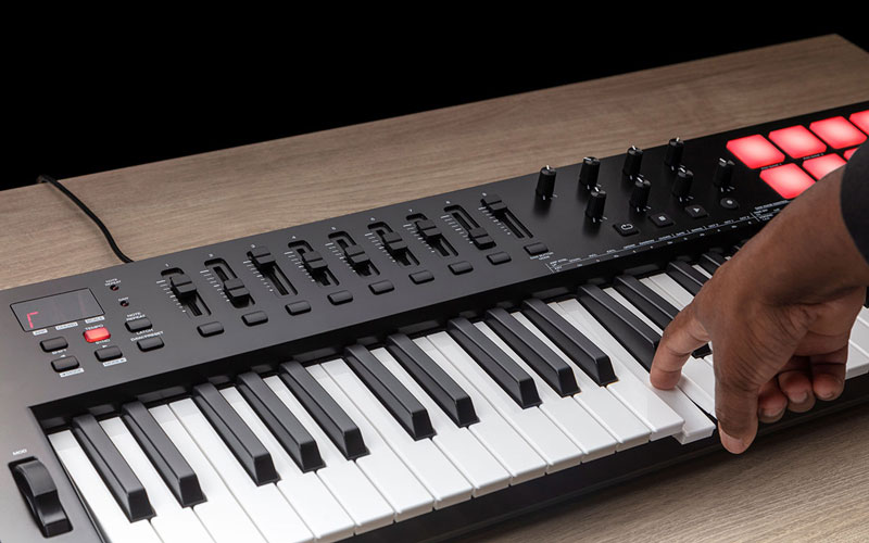 | Контроллеры | Кнопки Octave Up/Down, колеса Pitch Bend и Modulation, 8 программируемых энкодеров, 8 динамических пэдов, 9 программируемых фэйдеров |