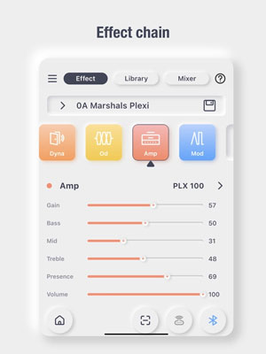 Эффекты52 модели усилителей, 49 эффектов (динамические, distortion, модуляция, ревербератор), 40 партий ударных, 10 метрономов, 80-секундный лупер