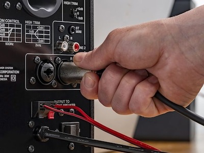 На звук, воспроизводимый динамиками, иногда влияет окружающая среда. Задняя панель HS4 оснащена функциями ROOM CONTROL и HIGH TRIM, которые позволяют вам вносить коррективы для достижения идеального звука для любой среды, например, уменьшая ненужные, преувеличенные низкие частоты, которые часто могут возникать при установке мониторов рядом со стенами.