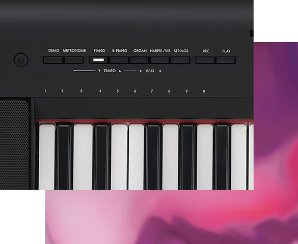 Клавиши фортепианного типа Piaggero позволяют использовать его в качестве MIDI-клавиатуры для ввода музыкальных данных или даже аудиозаписи собственного исполнения. Также вы можете воспроизводить любимые песни со своих смарт-устройств* через динамики NP-35 и наслаждаться игрой под них.