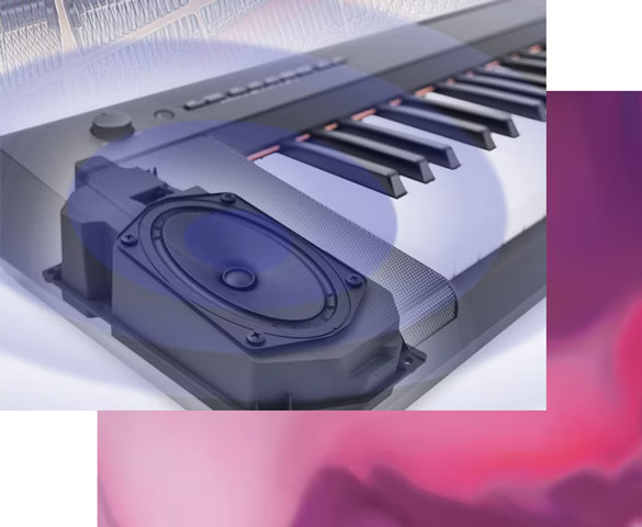 Даже при легком прикосновении звук Piaggero реалистично меняется в зависимости от силы нажатия клавиш, позволяя вам насладиться выразительностью, приближающейся к акустическому фортепиано.